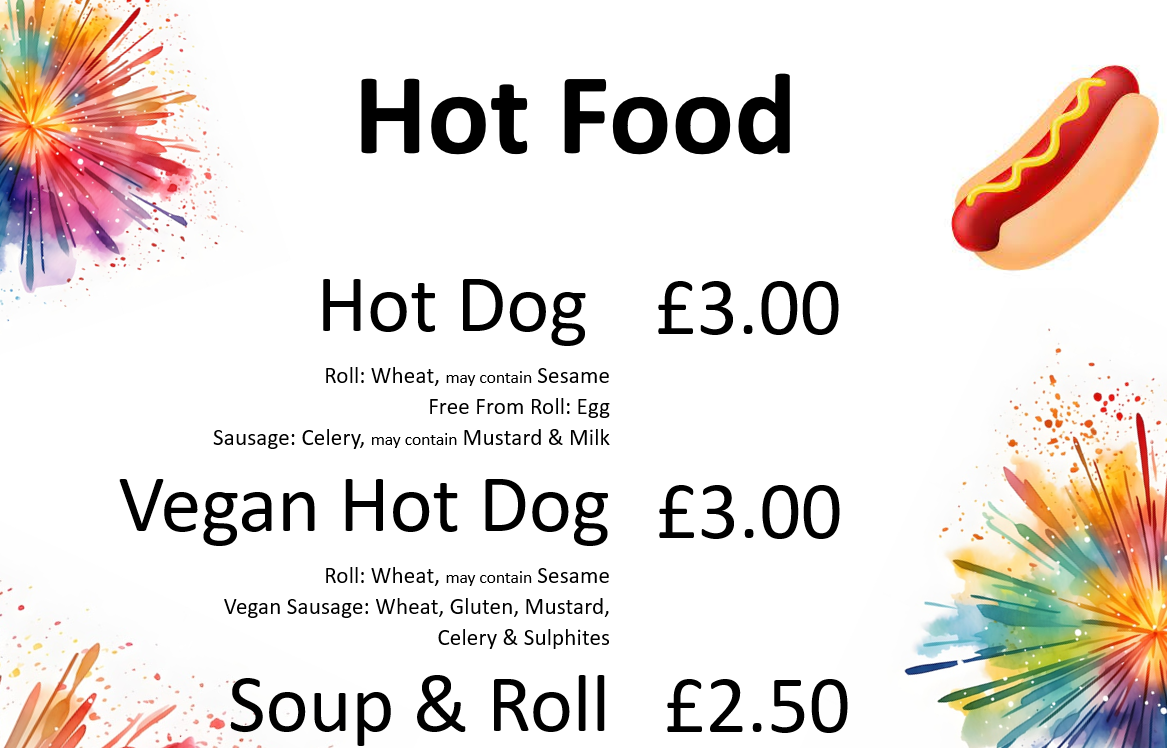 - JLPS Hot Food Stall - Hot Dogs, Vegan Hot Dogs, Soup & a Roll (all dietary requirements will be catered for).
