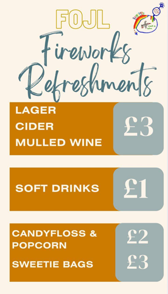 - Friends of Joy Lane will be selling Alcoholic & Soft Drinks, Popcorn, Candyfloss & Sweets (this year they will be based by the Key Stage 1 Double Doors).